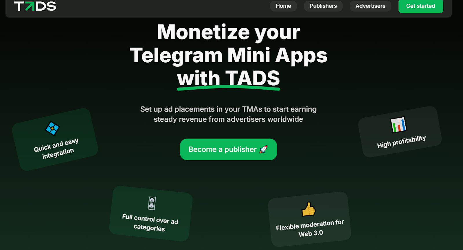 It offers Telegram mini apps owners of any size and theme to monetize their mini apps easily and has its own advertisers as well as proven reputation on the market.