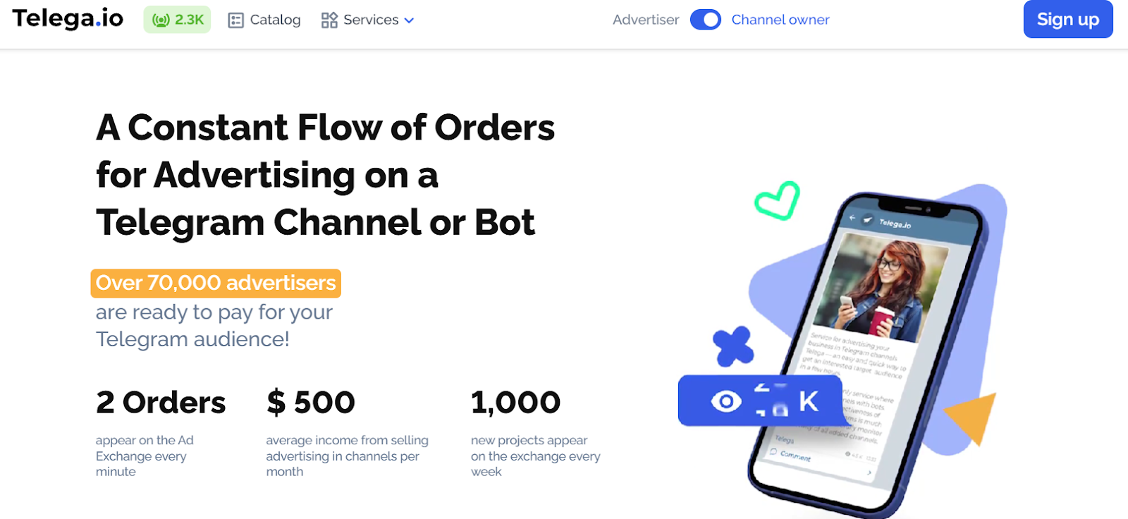Telega.io is an easy-to-use marketplace for channels and bots and advertisers. The site makes it easy to order ad placement without searching for appropriate advertisers.