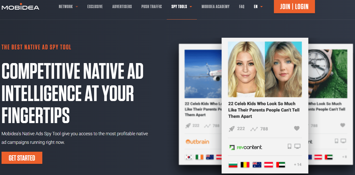Offering 10 million ads in more than 60 GEOs, Mobidea native spy tool is quite competitive. One of the unique features they provide is immediate alerts on competitors’ campaigns in order for affiliates to get freshest insights on the market.