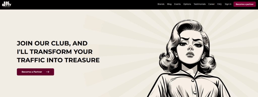 Big Betty Partners is an affiliate network in the iGaming space, known for its fresh approach and strong partnership standards. Launched in 2021, the platform has quickly scaled and positioned itself among the leading players on the market, promoting five high-performing casino brands.