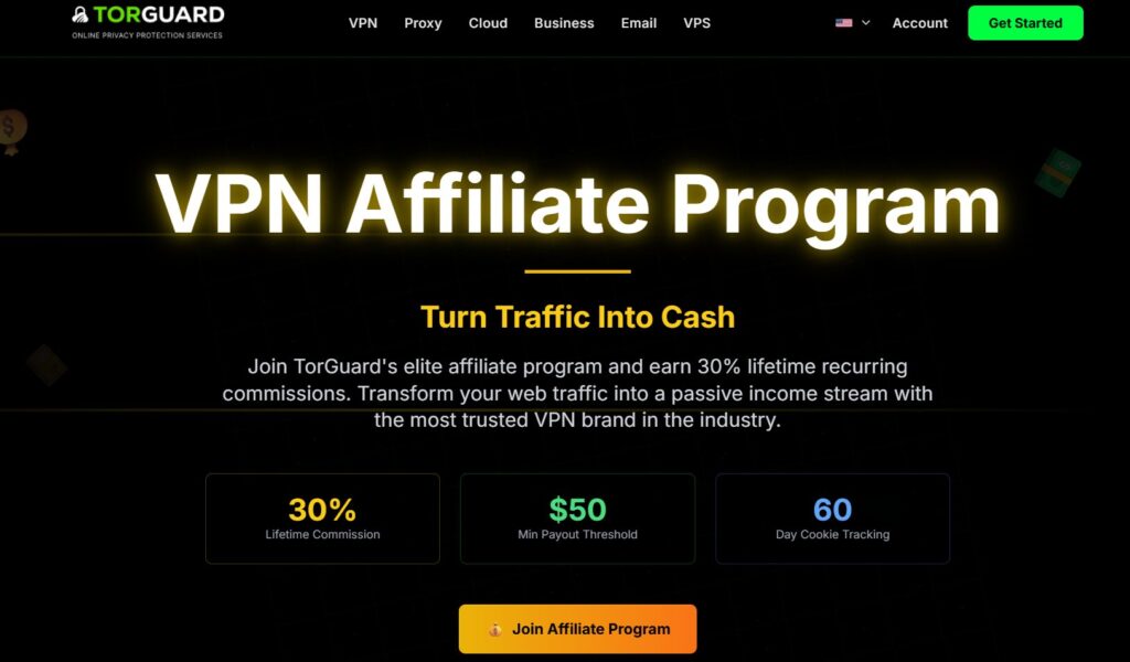 The TorGuard affiliate program allows you to earn revenue by referring customers to TorGuard’s VPN, Proxy, Dedicated IP, and Email services. Affiliates receive a 30% lifetime recurring commission for every signup they refer, including any account add-ons or upsells. This means you continue earning for as long as the customer remains subscribed.