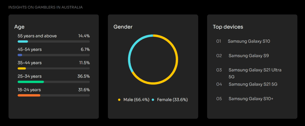 While online casino games are illegal, many Australians access offshore sites, so the demand is strong. Most players are male, aged from 18 to 34.