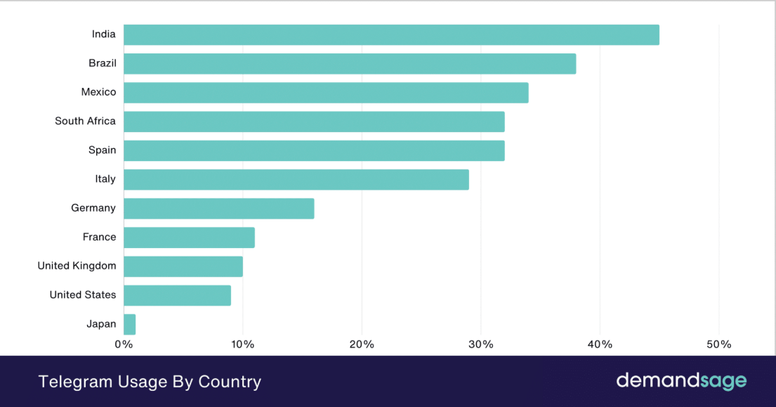 According to Demandsage, the USA is in the top 10 countries that use Telegram with 10% of users. Also, the users are really engaged — Statista report says that among 53% of US respondents who know about Telegram, 30% love the platform.