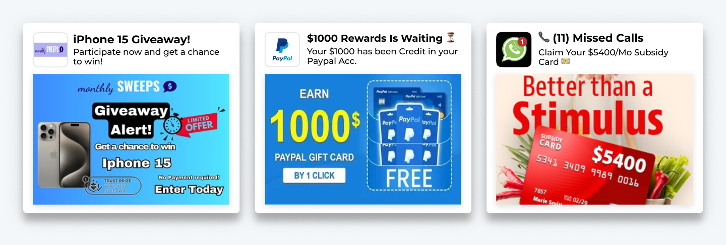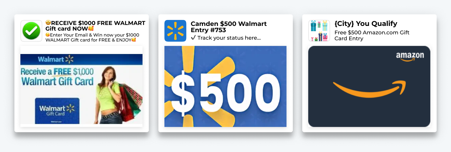 People love giveaways of expensive tech, especially iPhones, which are popular among Americans. You can apply phrases like “ You will win TODAY” or appeal to the fact that this is the last day of the giveaway. - Gift cards are a thing.