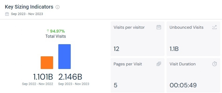 By the end of 2023, Similarweb platform has researched the amount of traffic that comes to Brazil Betting sites and the enormous surge of activity was recorded. In September and November of 2022, there were 1.1 billion visits, while in these months of 2023 it reached x2 volume — 2.1 billion.