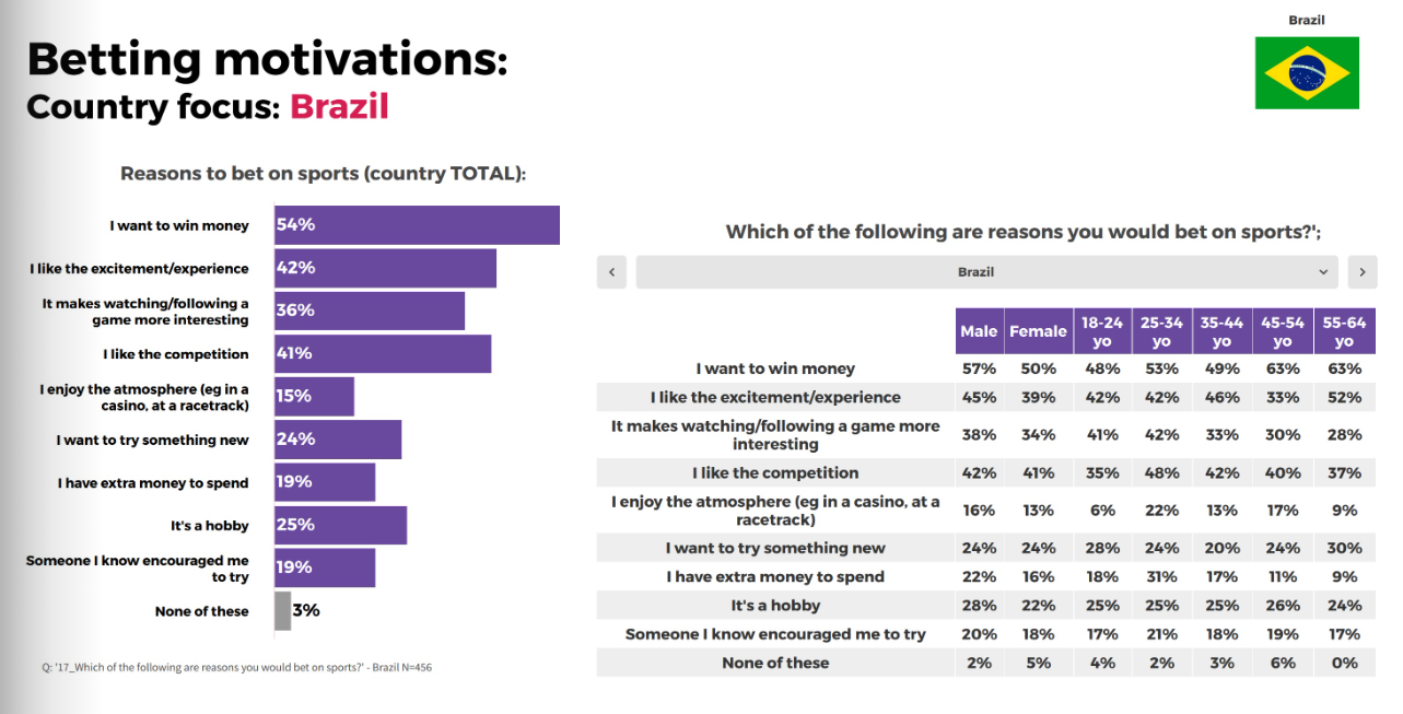 In terms of demographics, male do bet in Brazil more than women, while the most active age is between 25 and 34.