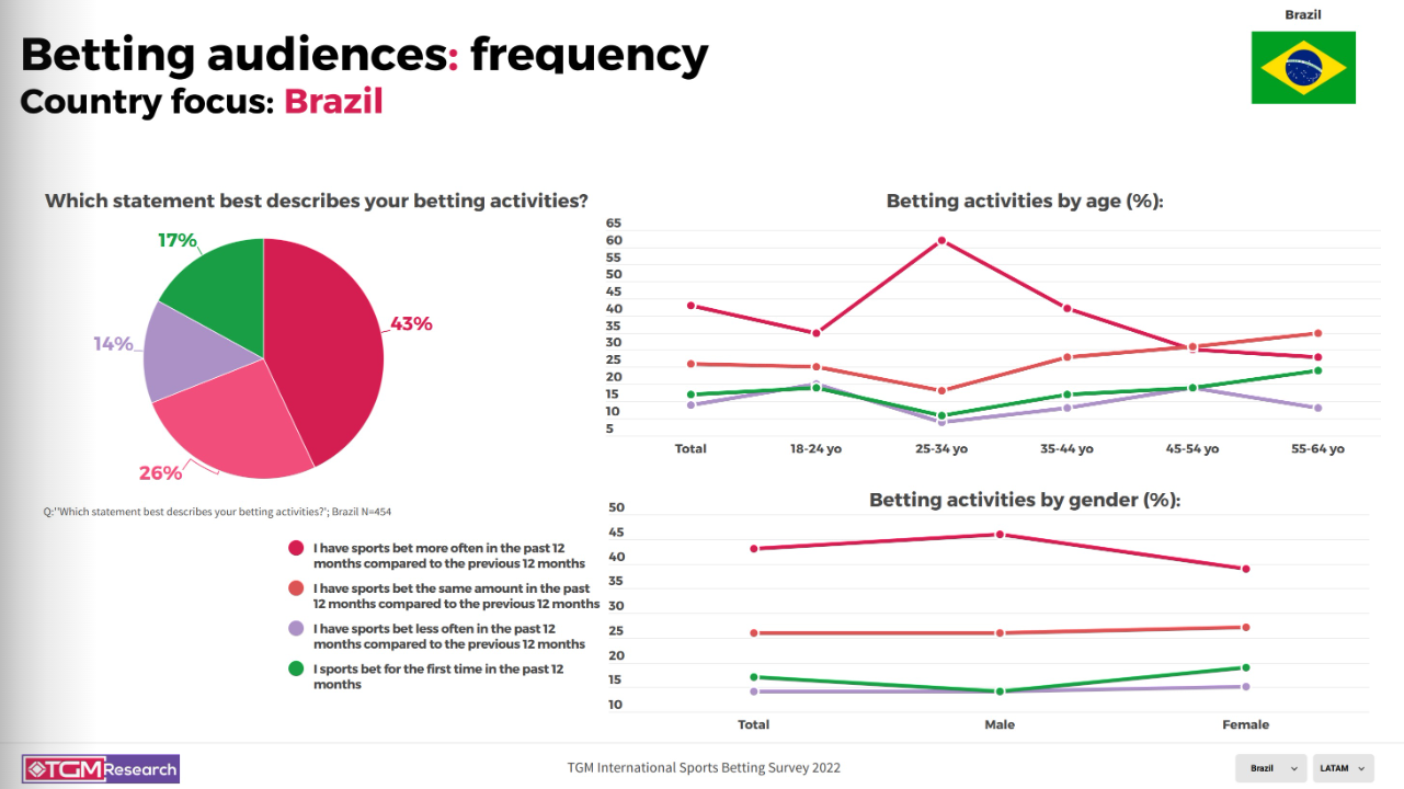 According to TGM Research, Brazil is the region where bettors are most active among all the LATAM regions.