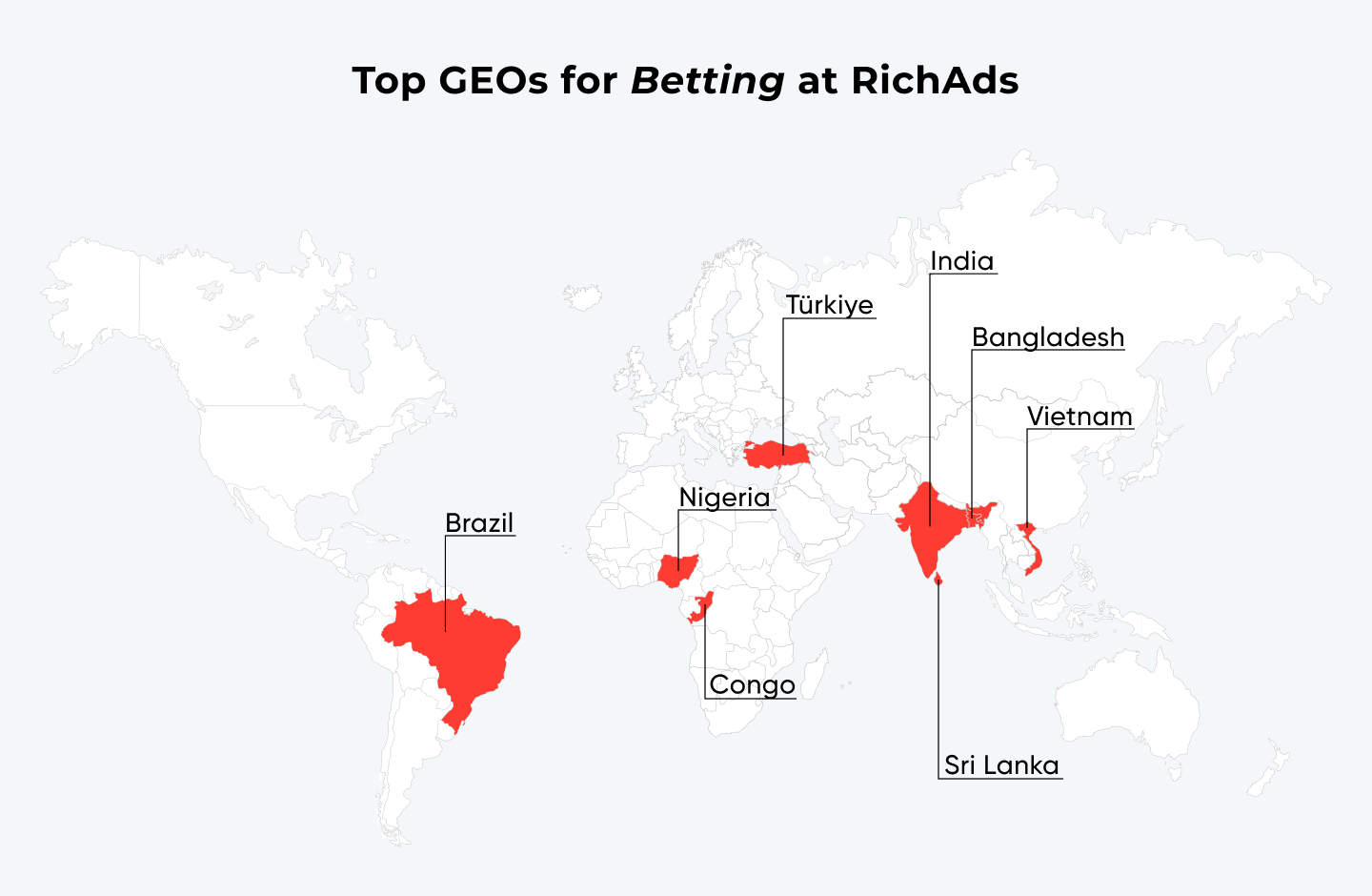 Top GEOs for Betting at RichAds now:
