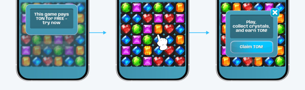 Basically, Playable Ads are an exclusively available at RichAds format of interstitial pages that users can interact with, for example, by simply tapping the screen, or even through a full-scale demo version of a game, or platform. Such advertisements appear directly in Mini Apps and present the Telegram audience not only with the opportunity to notice the product, but also preliminary try out it first-hand, thus increasing user engagement!