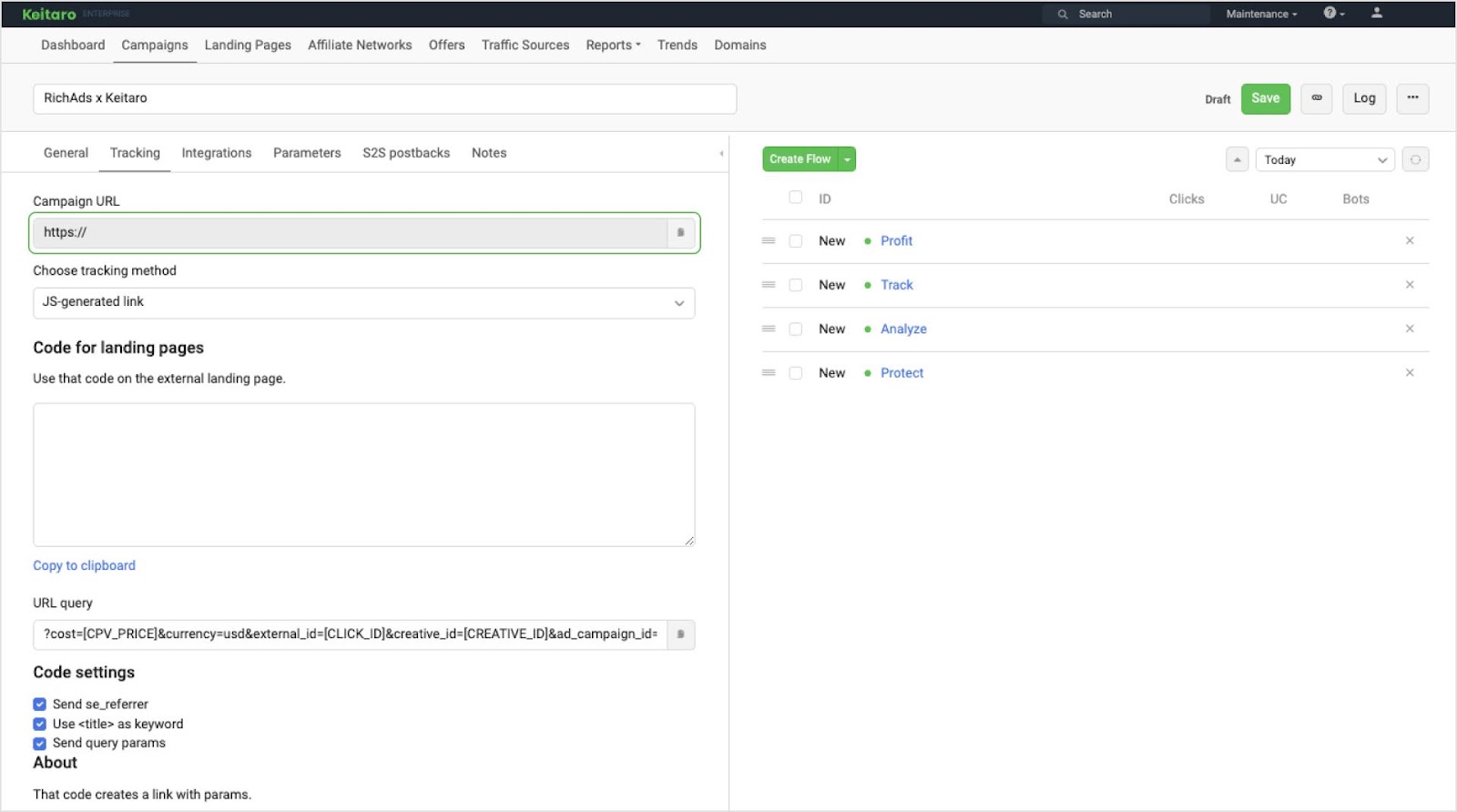 Get 20% off your first Keitaro purchase with Keitaro promo code code RICHADS, set up a profitable campaign at RichAds and track its results!