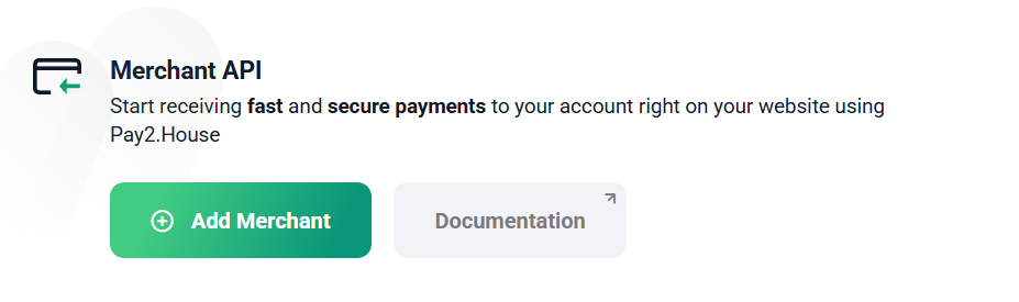 The Merchant API option is also available on the platform, which allows you to accept fast and secure payments directly on your website. To do this, specify the website and accounts for crediting funds, as well as create an API key.