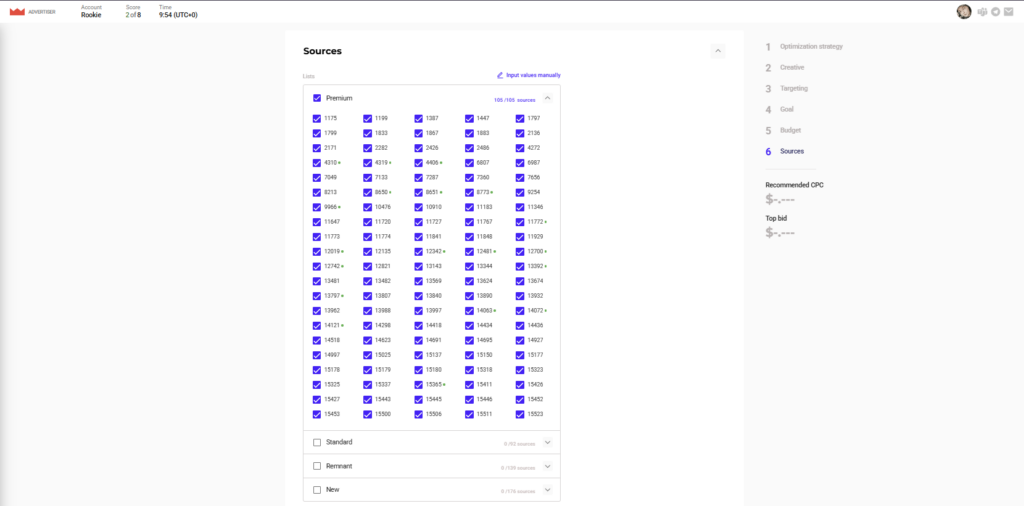 Premium traffic starts with math, not taste. New sources on the platform enter a common pool, then move into Premium, Standard, or Remnant based on CR, stability across campaign tests, data volume, and user engagement. In RichAds, the top slice becomes a separate premium layer you can target immediately. The trade-off: more predictable convert and CPA, but a narrower pool of sources for any premium advertising network.