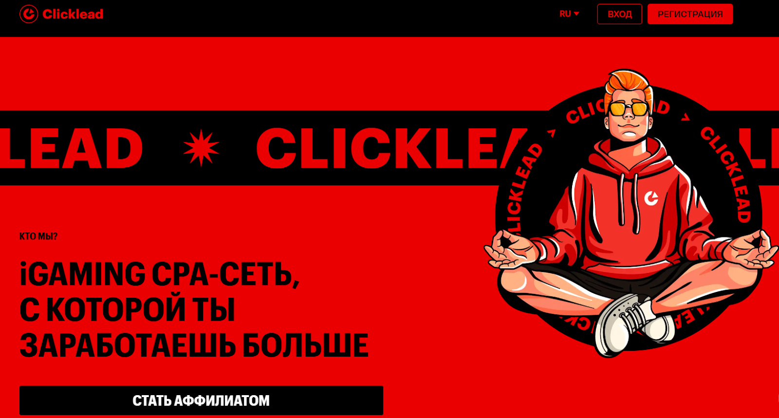 Clicklead — проверенная временем iGaming CPA-сетка, более 8 лет на рынке. Внутри сетки можно найти качественные офферы от прямых рекламодателей, тщательно отобранные командой. Основной тип выплат — CPA, но при желании можно выбить RevShare.