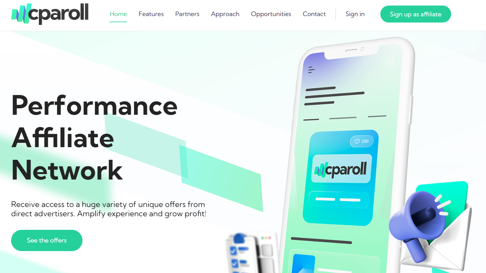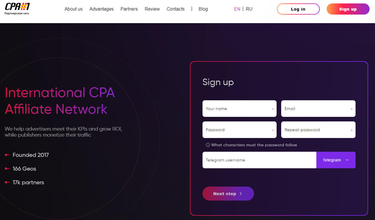 С момента своего создания CPA#1 значительно выросла, сейчас она охватывает 166 стран и сотрудничает с более чем 17000 аффилированными лицами. Помимо эксклюзивных офферов, сетка предлагает реферальную программу с комиссией до 3%. Среди их уникальных функций — специально разработанные PWA и готовые приложения для iOS и Android.