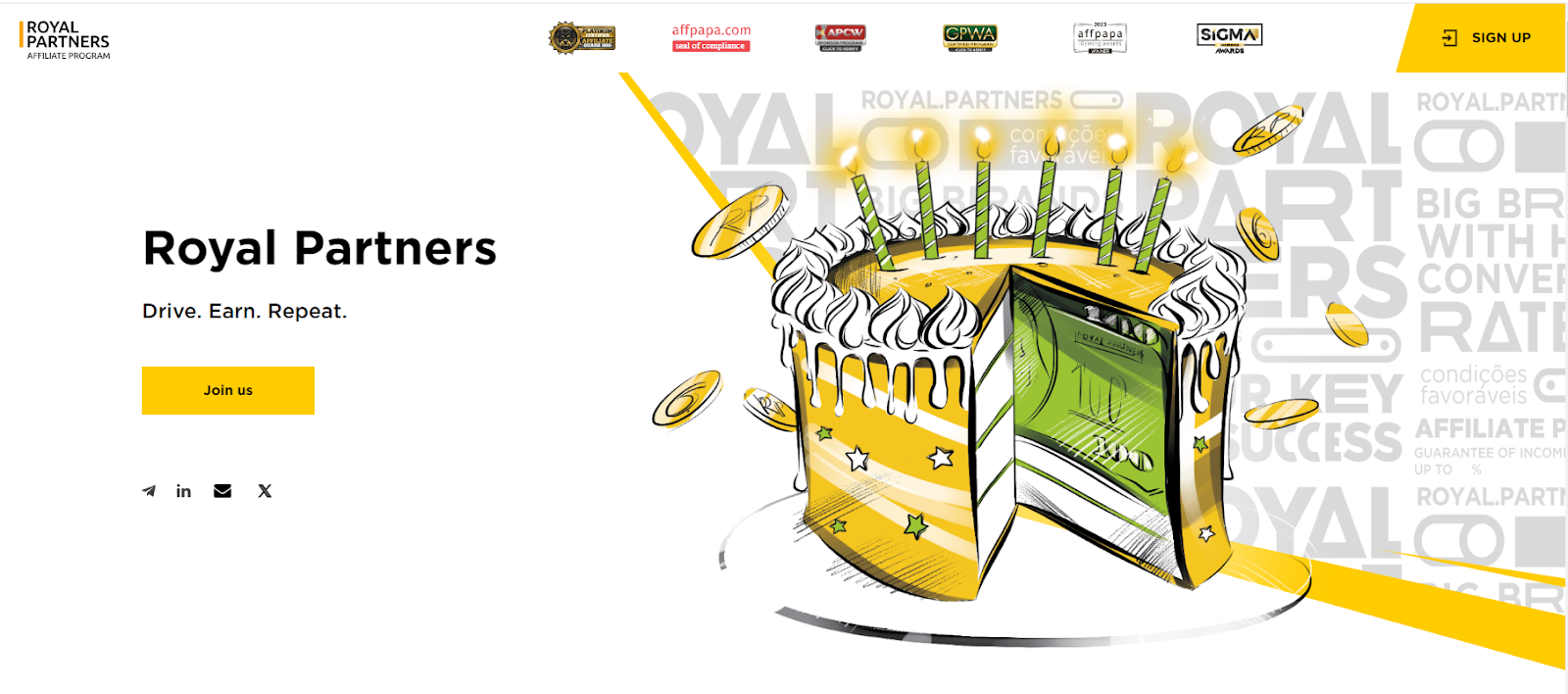 Royal Partners на iGaming рынке уже более 5 лет и зарекомендовали себя как отличный прямой рекламодатель собственных брендов: Monro, Drip, Starda, Lego, Sol, Jet, Fresh, Roz, Izzi, Volna. Партнерская программа постоянно расширяет охваты, добавляя новые ГЕО и продукты. Программа уже завоевала доверие более 5000 аффилиатов по всему миру, которые пользуются выгодными ставками и постоянными выплатами.