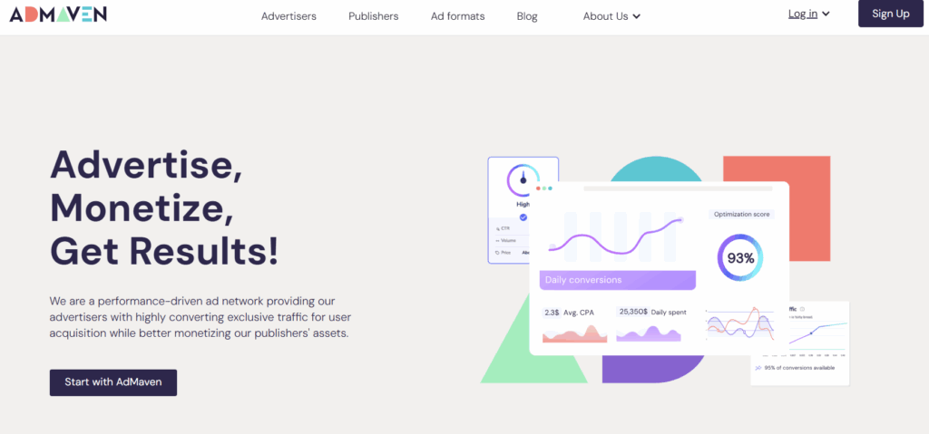 AdMaven — перфоманс-ориентированная рекламная сеть, предлагающая отличные возможности монетизации и мощные инструменты управления кампаниями.