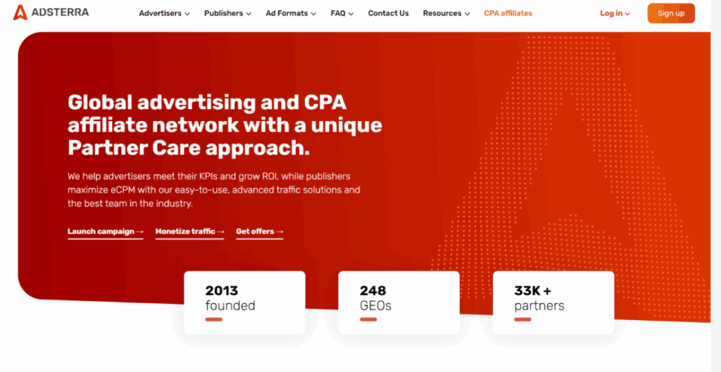 Adsterra — мультиформатная рекламная сеть с большим глобальным охватом, идеально подходящая для масштабного тестирования и стабильного трафика.