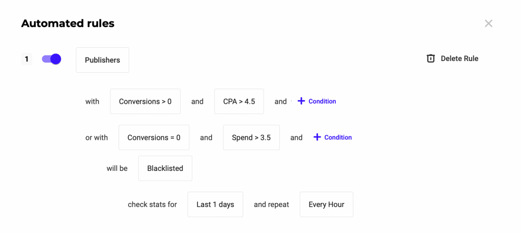 Тем не менее, если у вас есть трекер, алгоритм поможет вам получить желаемую цену за конверсию! - Автоматические правила.