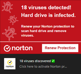 Предупреждайте потенциальных клиентов о том, что на их компьютере или мобильном устройстве могут быть вирусы. Важно следить за тем, чтобы текст был убедительным, но не слишком пугающим, также такие объявления должны визуально напоминать реальные системные уведомления.