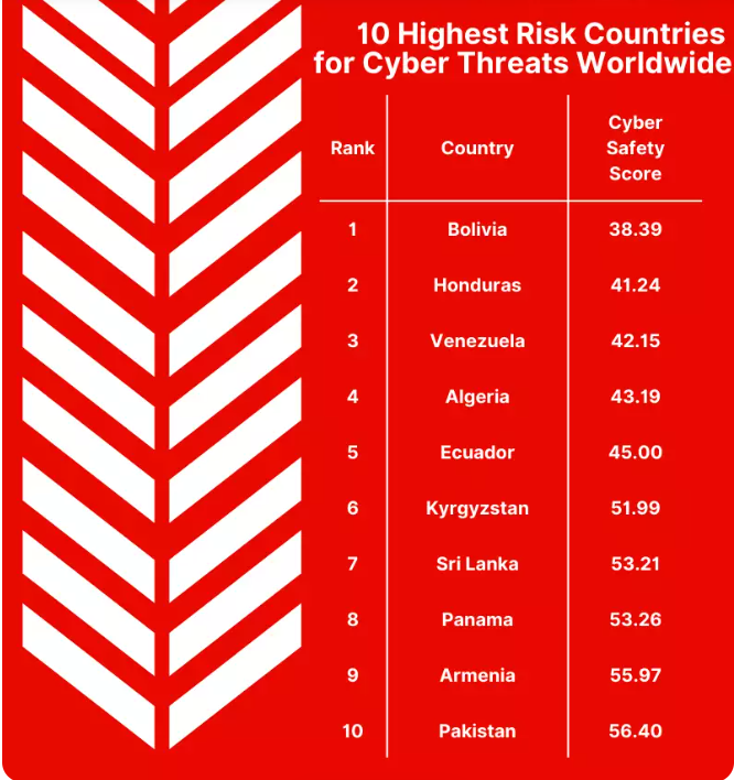 В основном кибератаки чаще всего угрожают странам Тир 3, таким как Боливия, Гондурас, Венесуэла, Алжир и Эквадор.