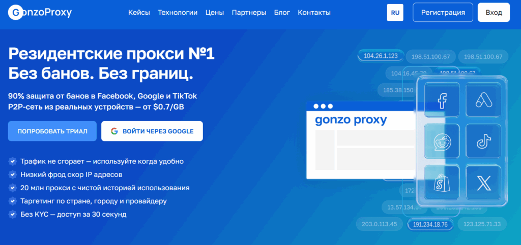 GonzoProxy — это премиальный прокси-сервис для аффилиатов, маркетологов, SEO-специалистов, разработчиков, крипто и SMM-специалистов. Платформа создана для решения одних из самых распространенных проблем в индустрии: частых банов аккаунтов, нестабильных IP-адресов и ограниченных возможностей геотаргетинга.