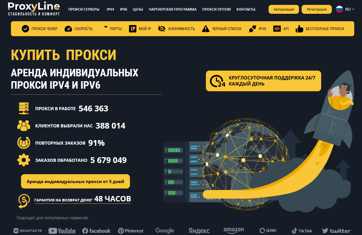 Proxyline — еще один лидер в топе прокси серверов для арбитража трафа, с семилетним опытом на рынке.