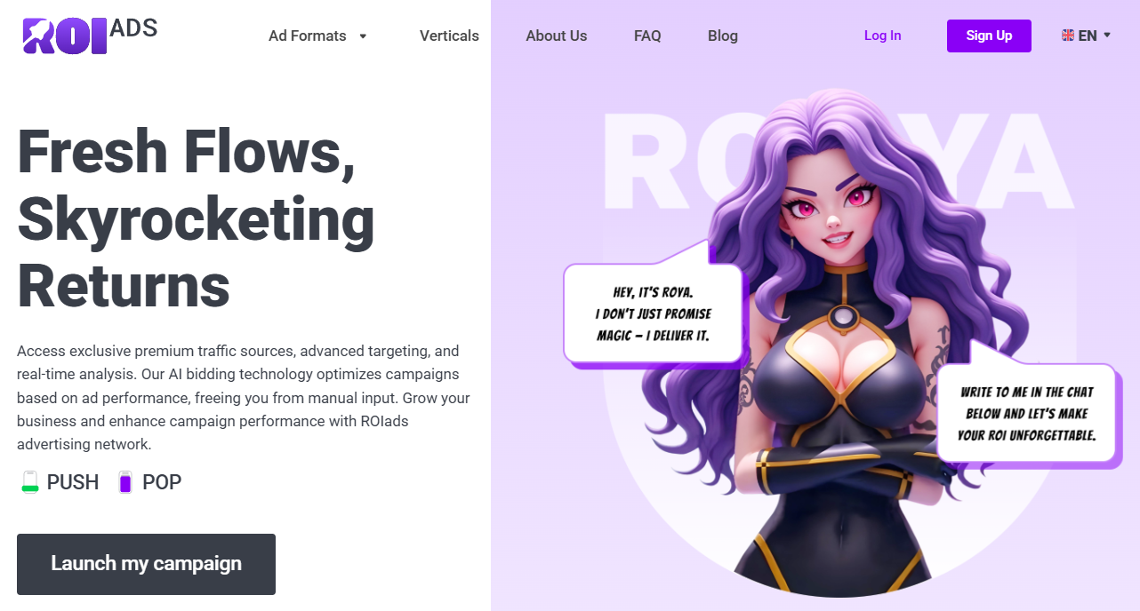 ROIads — это относительно новая, но уже набирающая обороты рекламная сеть, ориентированная на качество и результат. Их фокус — на автоматизации и точном таргетинге, что делает платформу хорошим вариантом для арбитражников, работающих с Forex и другими вертикалями с высоким ROI.