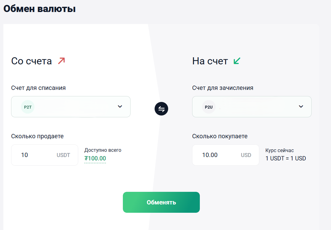 Сервис позволяет обменивать валюту внутри системы по текущему выгодному курсу. Вы можете обменивать как криптовалюту, так и фиатные деньги.