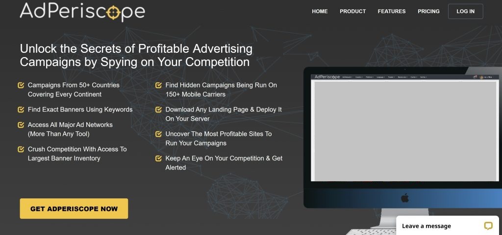 Сервис охватывает рекламу из более 75 стран, 40 источников трафика и 100 партнерок. Может похвастаться максимально детальными данными о компании и полезными таргетами о длительности запуска, полученному трафику и хитам.
