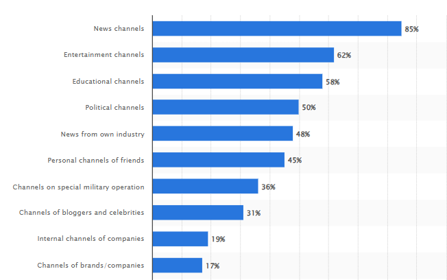 По тематике самыми популярными являются каналы с контентом по следующим направлениям: