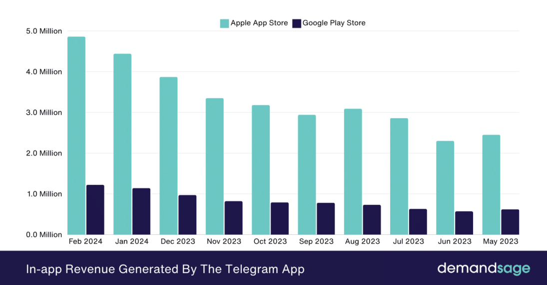 Основные каналы монетизации Telegram — это премиум-подписки и внутренняя реклама. В январе 2025 года платформа заработала 13,6 миллионов долларов только на in-app покупках. - Платные подписки (Telegram Premium).