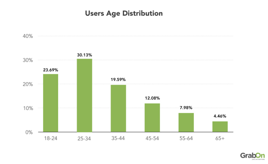 - 31% пользователей находятся в возрасте от 25 до 34 лет