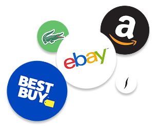 eBay, Amazon, clothing, beauty, electronic stores.