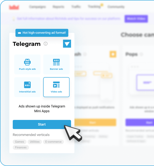All existing formats of advertising in Telegram are available at RichAds.